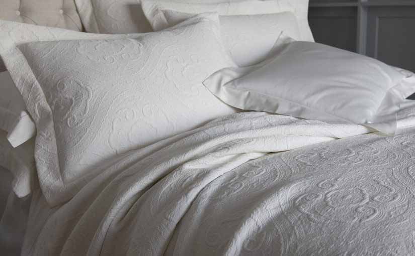 Exclusively made for us in Italy of GOTS certified organic cotton with old world European quality, sewing and finishing. Our 460 thread count polished sheeting is also custom made to order in Italy. Also available are coordinating organic cotton velvet and towels. These textiles are available in custom and by the meter. Our King Charles Matelassé and fine linens are made in Italy with Old World European quality. A truly historic and richly textured design.